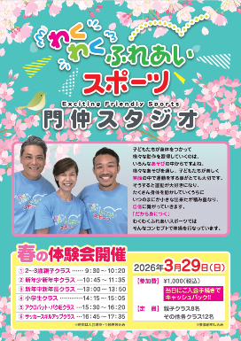 | 参加費 | ¥1,000(税込) 体験会当日にご入会手続きで ¥1,000キャッシュバック! |